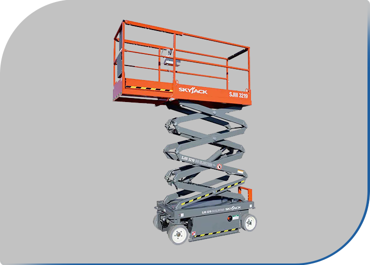Las plataformas de tijera tienen un sistema de elevación formado por un robusto chasis metálico que sostiene una estructura metálica montada en forma de tijera, que le permite ascender o descender, verticalmente, mediante el empuje de un sistema de cilindros hidráulicos.